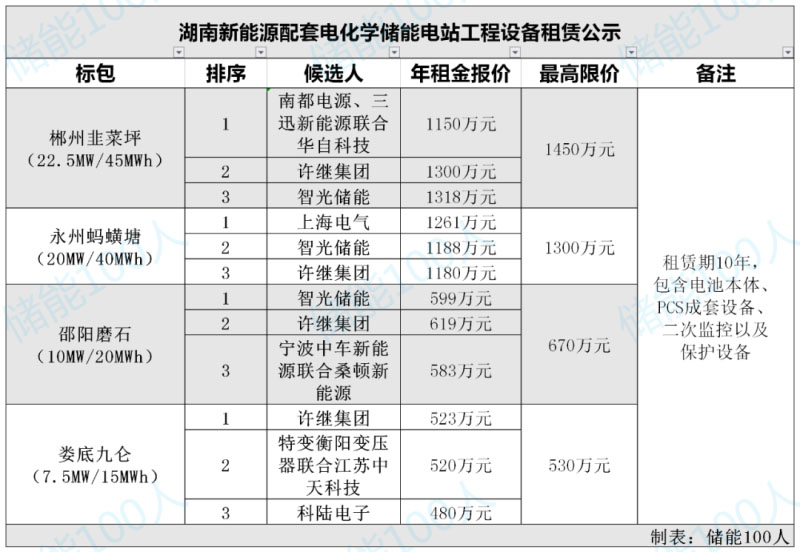 中國(guó)儲(chǔ)能網(wǎng)訊:12月21日,湖南新能源配套電化學(xué)儲(chǔ)能電站核心設(shè)備租賃公示候選人,上海電氣,南都電源、湖南三迅新能源、華自科技組成的聯(lián)合體,智光儲(chǔ)能,許繼集團(tuán)從眾多的競(jìng)爭(zhēng)對(duì)手中脫穎而出,分別攬下1個(gè)標(biāo)包,將各自的儲(chǔ)能版圖再度大幅擴(kuò)展。