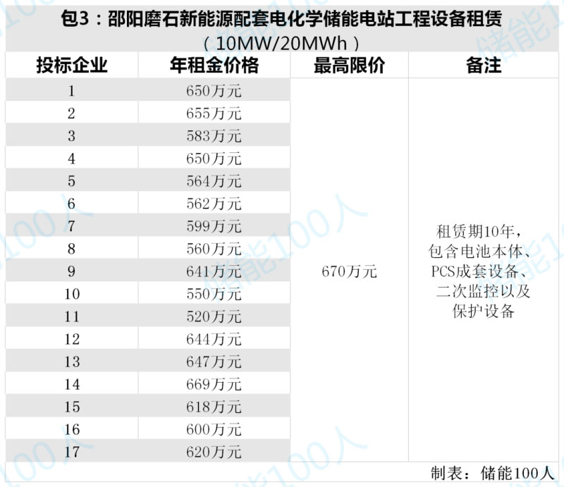 根據(jù)“儲(chǔ)能100人”此前獨(dú)家跟蹤報(bào)道(湖南新能源配套儲(chǔ)能項(xiàng)目核心設(shè)備租賃開(kāi)標(biāo),最終會(huì)花落誰(shuí)家?),該項(xiàng)目投標(biāo)競(jìng)爭(zhēng)異常激烈,共有21家公司參與角逐。有投標(biāo)企業(yè)表示,該項(xiàng)目對(duì)設(shè)備的技術(shù)指標(biāo)要求很高,系統(tǒng)效率要求在86%-88%之間,10年內(nèi)儲(chǔ)能系統(tǒng)放電容量不低于初裝時(shí)的90%。