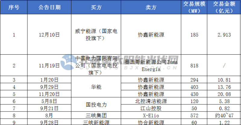 國(guó)家電投旗下中國(guó)電力國(guó)際有限公司、威寧能源兩家子公司共交易光伏電站規(guī)模1.003GW,交易金額2.9億元以上。