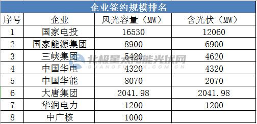 (注:上表企業(yè)按明確光伏項(xiàng)目簽約規(guī)模排名,不包含風(fēng)光儲(chǔ)一體化、新能源項(xiàng)目規(guī)模;國(guó)投電力未找到簽約數(shù)據(jù))