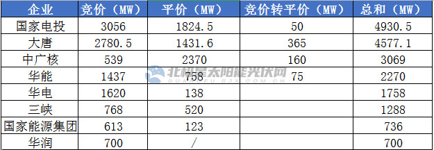 大唐集團(tuán)以4.58GW排名第二,其中競(jìng)價(jià)項(xiàng)目2.78GW,平價(jià)項(xiàng)目(含競(jìng)轉(zhuǎn)平)1.8GW。