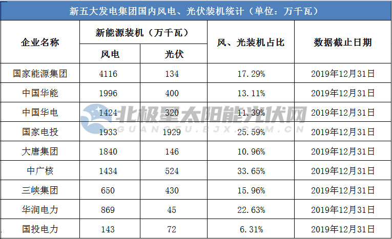 據(jù)北極星太陽(yáng)能光伏網(wǎng)統(tǒng)計(jì),截至2019年底,“五大四小”中8家風(fēng)光裝機(jī)占比已達(dá)總裝機(jī)的10%以上,其中國(guó)家電投、中廣核、華潤(rùn)電力風(fēng)光裝機(jī)占比超20%。