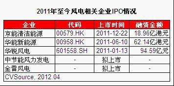 資本市場(chǎng)方面,2011年僅有3家風(fēng)電企業(yè)實(shí)現(xiàn)IPO,另根據(jù)4月12日證監(jiān)會(huì)最新公布的首次公開發(fā)行股票申報(bào)企業(yè)名單顯示,僅有中節(jié)能、金雷風(fēng)電2家企業(yè)擬A股上市。