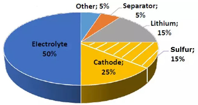Fig.1 Weight distribution of components in lithium sulfur batteries
