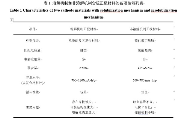 減少電解液用量,是提升鋰硫電池比能量的直接途徑。一般認(rèn)為以下三種途徑可能減少電解液用量。①少電解液體系的開發(fā)。鋰硫電池通用的電解液是以一定比例的DOL和DME為混合溶劑,采用LiTFSI為電解質(zhì)鹽,加上LiNO3添加劑組成,在軟包裝電池的通常用量是E/S為3~3.5。文獻(xiàn)中有關(guān)于減少鋰硫電池電解液用量的報道,如選用對多硫離子溶劑化程度低的腈類溶劑[4]、對多硫離子溶解度低的氟代醚類溶劑[5]及降低溶劑活性,減少副反應(yīng),改變?nèi)芙?沉積機(jī)制為半固態(tài)機(jī)制等[6],這些工作雖然在一定程度上可以降低電解液用量,但往往以增加極化、降低材料利用率為代價,目前尚無有效的可取代現(xiàn)有的DOL/DME組合的溶劑。我們從降低黏度角度設(shè)計電解液的組成和配比。鋰硫電池放電過程有多硫離子溶解進(jìn)入電解液中,本身可以作為電解質(zhì)鹽承擔(dān)離子輸運(yùn)作用,這樣可以適當(dāng)降低電解質(zhì)鹽的用量,獲得低黏度、低密度的電解液,同時不影響電解液的離子電導(dǎo)。以此思路制備的電解液,在降低E/S值時,也不會因?yàn)殡娊庖吼ざ冗^大而增加電池極化、降低容量。我們將常用醚類溶劑DOL/DME中電解質(zhì)鹽的濃度降至0.6mol/L LiTFSI/0.4mol/L LiNO3,E/S為2.5時,電池的比能量可以達(dá)到500W?h/kg以上,E/S比為2.2時,電池的比能量可以達(dá)到550W?h/kg以上。由此可見,鋰硫電池中的電解液量是可能減少的。探索在溶解機(jī)制的鋰硫電池中電解液減量以及減量的極限需要引起更多的關(guān)注。②尋找非溶解機(jī)制的正極材料。與溶解機(jī)制的正極材料相比,非溶解機(jī)制的正極材料在減少電解液用量上具有先天優(yōu)勢。硫化聚丙烯腈(SPAN)即是此類材料的典型代表。表1對比了溶解機(jī)制和非溶解機(jī)制含硫正極材料的各項(xiàng)性能。由表可知,除了容量和放電電壓低于溶解機(jī)制正極材料外,非溶解機(jī)制正極材料在循環(huán)穩(wěn)定性上和減少電解液用量方面具有明顯優(yōu)勢,如果能找到提升其容量和電壓的技術(shù)途徑,SPAN完全可以用于構(gòu)建一類新型的高比能、長壽命鋰電池。如何提高SPAN的容量和電壓呢?首先要研究清楚其儲鋰機(jī)制。我們首次采用固體核磁技術(shù),詳細(xì)研究了SPAN在放電過程中的碳雜化結(jié)構(gòu)的變化,結(jié)果表明,SPAN在首次放電過程中,除了硫-硫鍵斷裂外,一部分吡啶環(huán)中的C=N和C=C雙鍵打開與鋰發(fā)生了反應(yīng),形成“共軛雙鍵儲鋰”,因而SPAN的實(shí)際放電比容量超過硫的理論比容量;而在首次充電過程中,一部分碳原子和氮原子未發(fā)生脫鋰反應(yīng),進(jìn)而使一部分鋰離子殘留在充電產(chǎn)物中,造成較大的首次不可逆容量損失;但是殘留在充電產(chǎn)物中的鋰離子有利于提高材料的導(dǎo)電性,因此第二次的放電電壓高于首次放電電壓[7]。這種新機(jī)制的發(fā)現(xiàn),突破了以往一味提高硫含量來提高此類材料容量的局限,開辟了優(yōu)化結(jié)構(gòu)提高性能的新思路,也為開發(fā)同類型新材料提供了理論基礎(chǔ)。SPAN與鋰離子電池通用的碳酸酯類電解液匹配性良好,可以與鋰離子電池正極材料相類比。例如,與三元或富鋰錳基正極材料相比,SPAN對鋰的電位雖然僅是前者的一半,但容量卻超過前者的2倍,完全可以構(gòu)建高比能量電池體系,值得大家關(guān)注。③對鋰負(fù)極進(jìn)行表面保護(hù),生成穩(wěn)定的SEI膜,減少對電解液的消耗,該問題在此不做詳細(xì)討論。