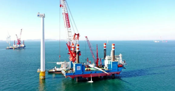 “鐵建風(fēng)電01”和“中船海工101”兩艘大型風(fēng)電安裝船在華能大連莊河Ⅱ項(xiàng)目實(shí)施風(fēng)機(jī)安裝