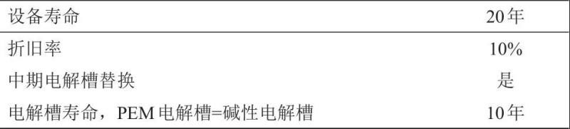表1是進(jìn)行LCOH成本分析研究的財(cái)務(wù)假設(shè)。值得指出的是,盡管文獻(xiàn)[13,14]表明PEM體系的壽命還不及堿性體系,但隨著燃料電池技術(shù)的飛速發(fā)展,PEM電解堆的壽命已有很大提高,因此在整個(gè)分析過程中,設(shè)定PEM電解堆的壽命與堿性體系的相同,電解裝置的電力供給均為穩(wěn)定電源。