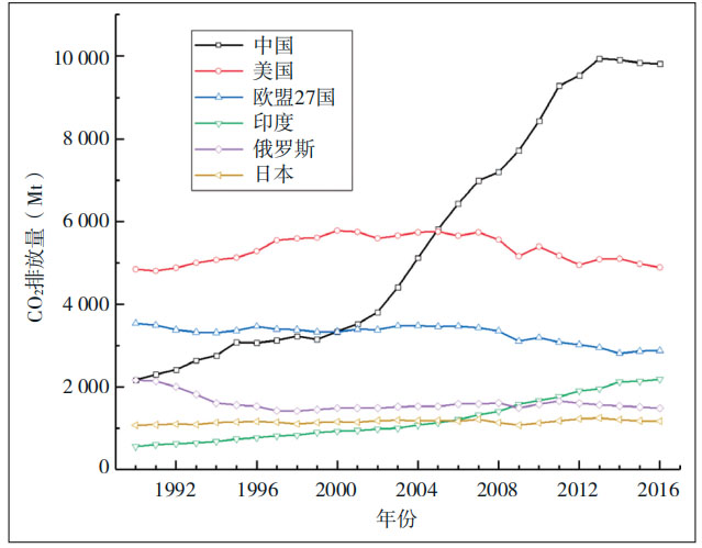 自上世紀(jì)以來,全球CO2排放逐年提高,溫室效應(yīng)日漸加劇。圖1示出了一些典型國家和地區(qū)的CO2排放情況,顯然我國CO2排放量在近20年內(nèi)迅速增長,2006年超過美國成為世界第一大排放國。尋求低碳類型能源,對緩解全球變暖、保障經(jīng)濟(jì)發(fā)展,有著重要意義。