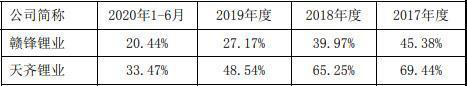 業(yè)績(jī)不佳的背后是盈利能力的劇烈下滑。2017年至2020年前6個(gè)月,容匯鋰業(yè)毛利率分別為41.13%、29.38%、20.65%和2.71%,呈現(xiàn)明顯的逐年下降趨勢(shì)。