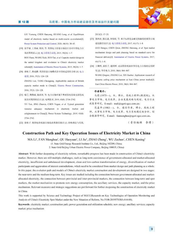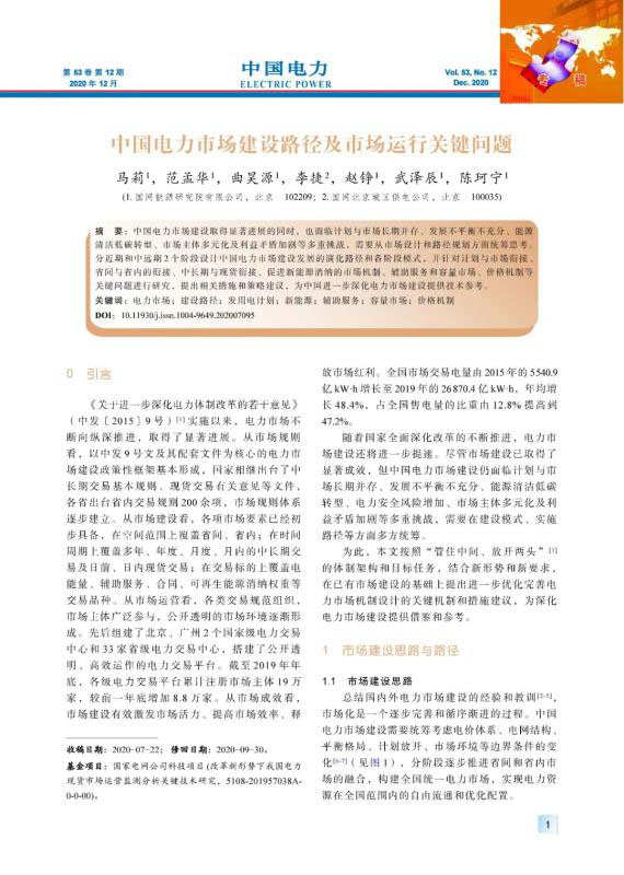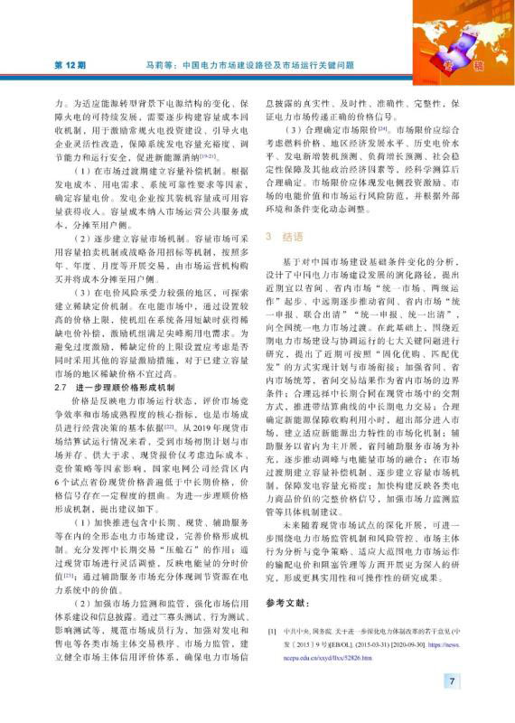 論文還討論了輔助服務(wù)交易機(jī)制、常規(guī)火電容量成本回收機(jī)制、電力市場(chǎng)價(jià)格形成機(jī)制等問題。