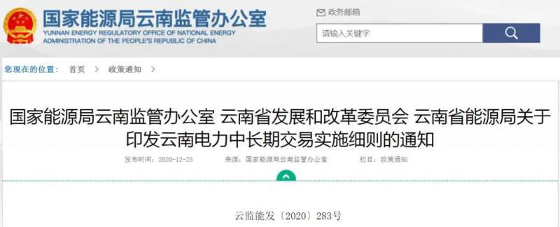 中國儲能網(wǎng)訊:國家能源局云南能監(jiān)辦消息:12月23日,云南能監(jiān)辦、云南省發(fā)改委、云南省能源局聯(lián)合下發(fā)《關(guān)于印發(fā)云南電力中長期交易實(shí)施細(xì)則的通知》(云監(jiān)能發(fā)〔2020〕283號),是10月26日公開征求意見后的正式印發(fā),是繼海南、華東跨省、甘肅之后,第四個(gè)按發(fā)改能源規(guī)〔2020〕889號文要求印發(fā)的電力中長期交易實(shí)施細(xì)則。