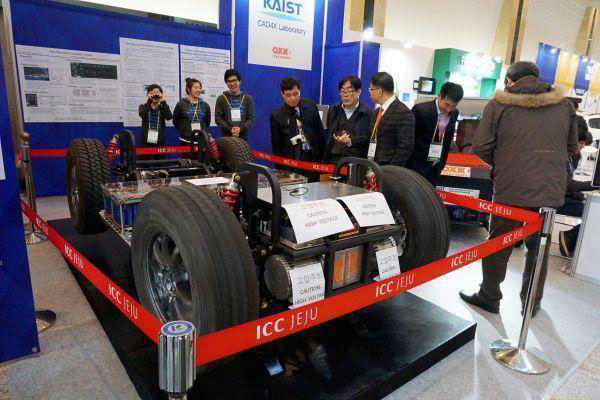 資料圖:在韓國(guó)濟(jì)州島舉行的第二屆國(guó)際電動(dòng)汽車展上,人們?cè)陧n國(guó)科學(xué)技術(shù)院研發(fā)的電動(dòng)車展區(qū)參觀。(新華社)
