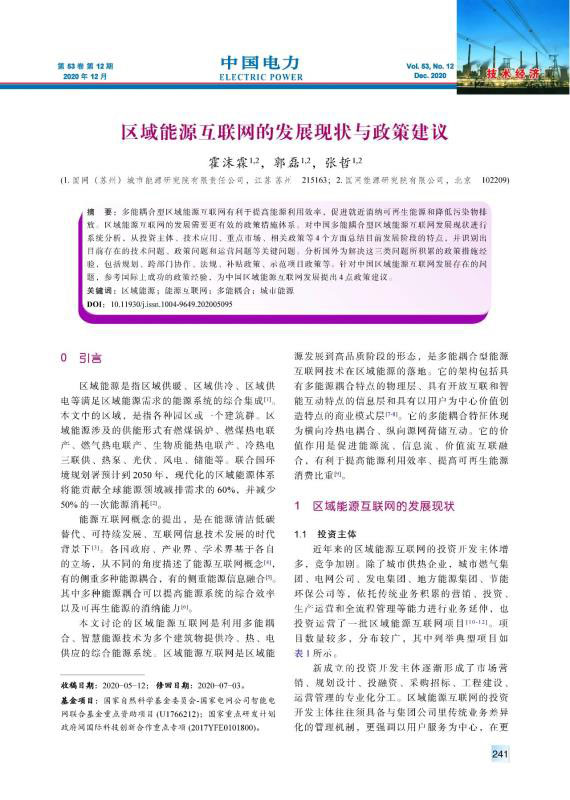霍沫霖, 郭磊, 張哲. 區(qū)域能源互聯(lián)網(wǎng)的發(fā)展現(xiàn)狀與政策建議[J]. 中國電力, 2020, 53(12): 241-247.