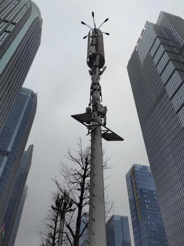 再例如貴陽數(shù)博大道與金融城交匯處的這座基站,原有4G宏基站為30米景觀塔+室外雙柜,已安裝4套系統(tǒng)。新增三大運營商5G的9副天線和3套主設(shè)備,鐵塔公司通過改造鐵塔和機柜,以及電池自動調(diào)節(jié)、智能削峰、太陽能備電等手段,解決了市電改造和電源擴容、備電問題,節(jié)約建設(shè)成本6萬元,為運營商每年節(jié)省租金3000多元。此外,還吸引了廣電的物聯(lián)網(wǎng)設(shè)備進駐。
