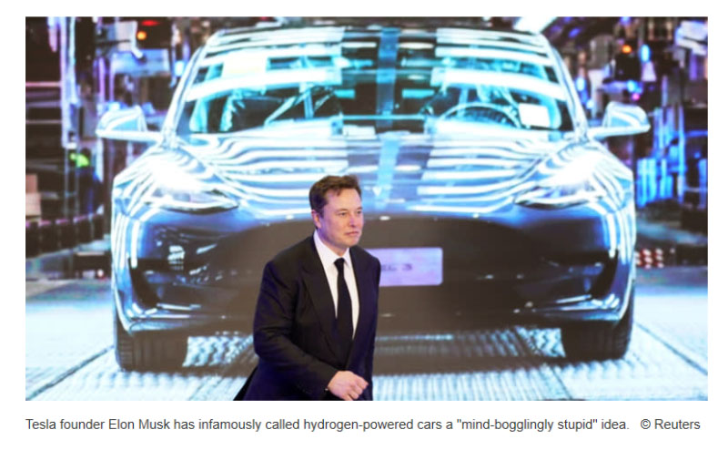 氫能的批評者把焦點放在成本問題上。生產(chǎn)純電池驅動汽車的特斯拉將氫燃料電池視為一項競爭性技術。特斯拉的創(chuàng)始人埃隆·馬斯克認為燃料電池是“傻瓜電池”,他稱氫動力汽車是一個“令人難以置信的愚蠢”想法。
