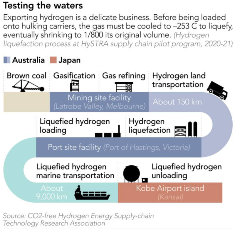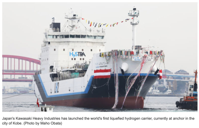 與此同時,該船由日本川崎重工制造的世界上第一艘“氫航母”在日本西部的港口城市神戶于去年下水。該船在零下253攝氏度的極低溫度下運載液態(tài)氫,將于2021年開始從澳大利亞向日本運送氫氣。到2030年,川崎重工的目標是擁有兩艘能為日本帶來22.5萬噸氫氣的船舶,足以為每年運行1萬公里的300萬輛燃料電池汽車提供動力。