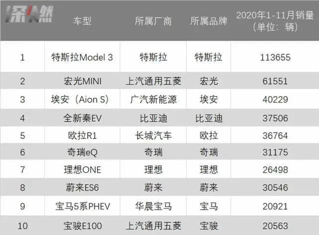 但到了下半年,國產(chǎn)自主品牌突然開始大爆發(fā)。根據(jù)各家發(fā)布的數(shù)據(jù),10月份,上汽通用五菱憑借著宏光MINI這張王牌、比亞迪憑借比亞迪漢 EV等,一舉成為新能源車銷量排名第一、第二的車企。