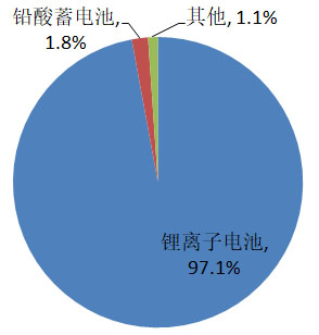 2020年新增投運(yùn)的電化學(xué)儲能中,鋰離子電池儲能新增裝機(jī)容量為762.3MW,占比97.1%,排名第一;鉛酸蓄電池儲能新增裝機(jī)容量為14.2MW,占比1.8%。如下圖所示。