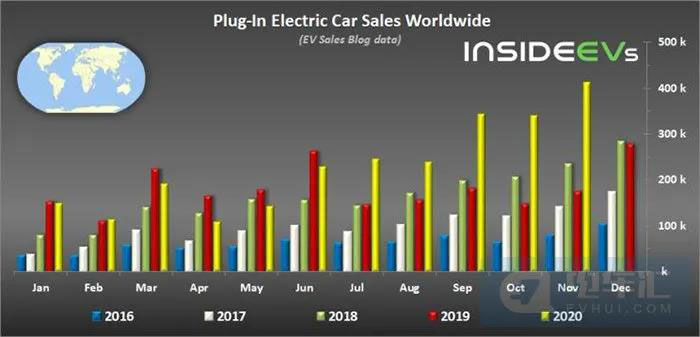 根據(jù)EV Sales Blog的數(shù)據(jù),全球新能源車在2020年11月同比增長(zhǎng)了133%,是近八年來(lái)最高的,其市場(chǎng)份額達(dá)到了5.9%,也創(chuàng)下了歷史新高。