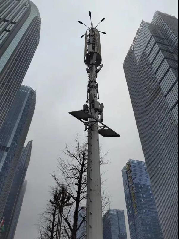 再例如貴陽數(shù)博大道與金融城交匯處的這座基站,原有4G宏基站為30米景觀塔+室外雙柜,已安裝4套系統(tǒng)。新增三大運營商5G的9副天線和3套主設備,鐵塔公司通過改造鐵塔和機柜,以及電池自動調節(jié)、智能削峰、太陽能備電等手段,解決了市電改造和電源擴容、備電問題,節(jié)約建設成本6萬元,為運營商每年節(jié)省租金3000多元。此外,還吸引了廣電的物聯(lián)網(wǎng)設備進駐。