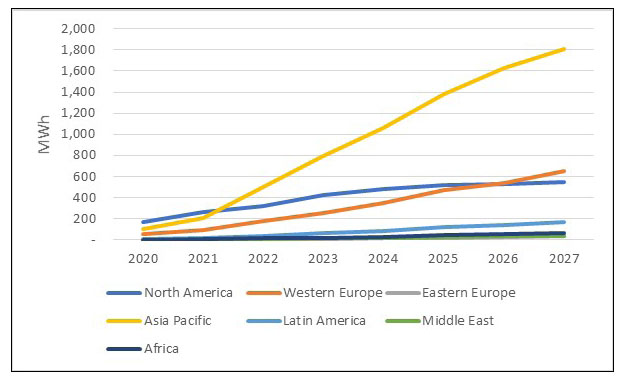 全球熱儲能(TES)年度供應商收入預測是從兩家分析機構提供的:Navigant公司(現(xiàn)為Guidehouse公司)和Grand View公司,并在圖59和圖60中進行了總結。