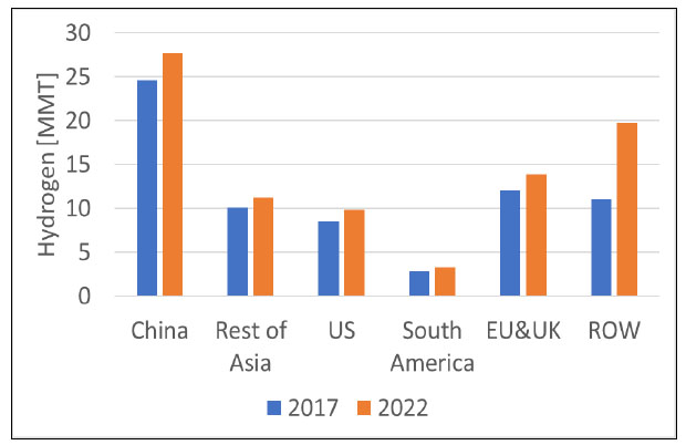 圖44. 全球氫氣消耗量(2017年~2022年)