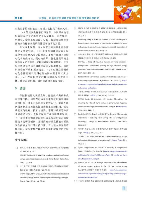 元博, 張運洲, 魯剛, 等. 電力系統(tǒng)中儲能發(fā)展前景及應(yīng)用關(guān)鍵問題研究[J]. 中國電力, 2019, 52(3): 1-8.