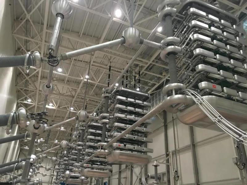 ▲集團為準東(昌吉換流站)—皖南(古泉換流站)±1100千伏特高壓直流輸電工程研制的KGWF-5455 ±1100千伏換流閥