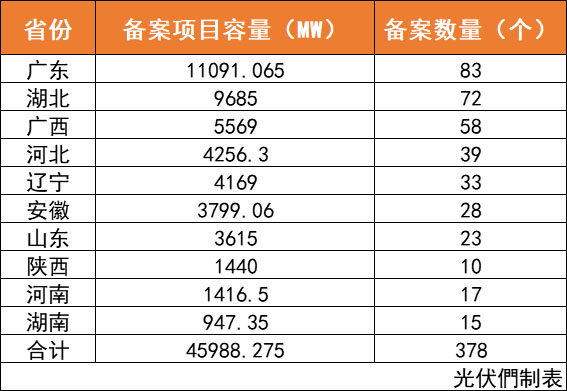 此外,從省份來看,廣東、湖北、廣西、河北、遼寧等省份倍受投資企業(yè)的青睞。其中廣東省以83個(gè)項(xiàng)目、11.09GW規(guī)模位列所統(tǒng)計(jì)的19省備案數(shù)量及規(guī)模第一。目前,湖北于下半年備案項(xiàng)目已突破過9GW,廣西、河北、遼寧備案超4GW,安徽、山東省項(xiàng)目也已突破3GW。