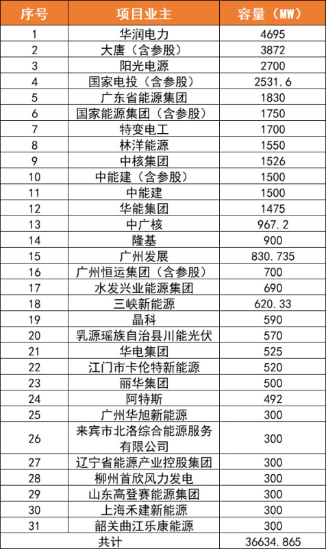 備注:表中僅列出所統(tǒng)計(jì)電站項(xiàng)目總?cè)萘砍?00MW的業(yè)主名單;特別強(qiáng)調(diào)的是,上述項(xiàng)目來源于項(xiàng)目審批監(jiān)管平臺(tái),因項(xiàng)目名單眾多,難免有疏漏,上述表格不做排名依據(jù),僅供讀者參考。