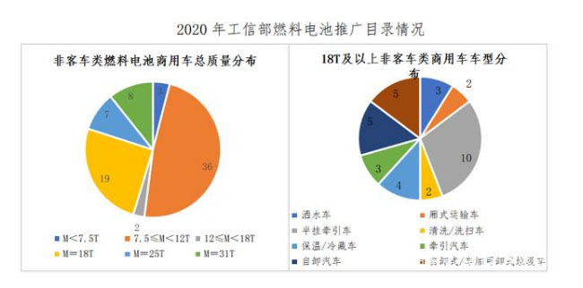 從工信上榜目錄來看:2020年工信部目錄上榜的281款燃料電池汽車,非客車類商用車上榜75款,占比26.7%,總質(zhì)量12T及以上36款,占非客車類商用車48%。其中,18T及以上就有34款,牽引車類13款(牽引車總質(zhì)量不包括拖掛車質(zhì)量,例如寶鋼的重卡總質(zhì)量18T,整備質(zhì)量8.8T,準(zhǔn)拖掛車總質(zhì)量為33.07T,既為42T半掛氫能重卡),非客車類重型商用車數(shù)量、種類和噸位都明顯上升。