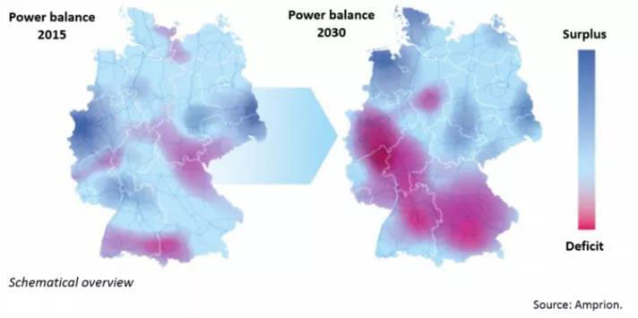 按照Amprion電網(wǎng)公司針對2015年與2030年情景所做電力平衡,未來十年后德國南部電力緊缺,北部電力盈余(南缺北豐現(xiàn)象),然而,目前連接德國南北部35,000公里的直流輸電線并不能完全承擔(dān)將北部的剩余發(fā)電傳至南部的任務(wù)。特別是在大風(fēng)天,北部的現(xiàn)貨電力市場中有大量廉價的可再生能源參與競價,大大壓低電力批發(fā)價格,鼓勵南部用戶購電,然而現(xiàn)有的輸電線卻無法將這些風(fēng)能全部輸送給客戶。因此,雖然北部發(fā)電中心可以在一定程度上通過靈活性調(diào)節(jié)和出口避免浪費風(fēng)電,但南部電網(wǎng)運營商仍需調(diào)度價格較高的常規(guī)能源機(jī)組進(jìn)行發(fā)電,從而提高了饋電成本。此外,由于各個北歐國家都在擴(kuò)大風(fēng)光發(fā)電能力,并且所有市場的用戶行為都表現(xiàn)出很大的相似性,因此調(diào)整進(jìn)出口以滿足德國電力市場穩(wěn)定性的能力將會越來越有限。這就使得南北輸電線的建設(shè)更有必要。