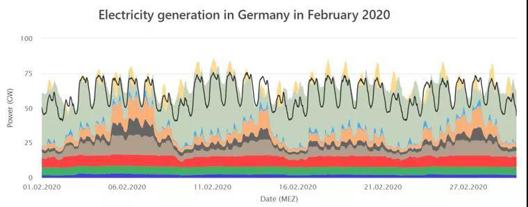 2020年的第一個季度,德國總電力消費量中來自可再生能源的電量占比達(dá)到了52%,是第一個完整的季度中可再生能源貢獻(xiàn)了該國超過一半的電力需求。2月甚至創(chuàng)下了單月61.8%的新高。相比之下,2019年第一季度的占比為44%。如此高比例的接入主要與2、3月創(chuàng)紀(jì)錄的風(fēng)電和較高的太陽能發(fā)電,以及新冠病毒大流行造成的總電力需求下降有關(guān)。本文將首先研究展示德國2020年以來各個月電力系統(tǒng)的負(fù)荷曲線,然后對德國電力系統(tǒng)能消納如此高比例的可再生能源的原因進(jìn)行解讀分析。在各國碳中和的大背景下,了解當(dāng)前德國電力系統(tǒng)電源結(jié)構(gòu),研判其能源轉(zhuǎn)型的過去、現(xiàn)在和未來,將是十分有必要的。