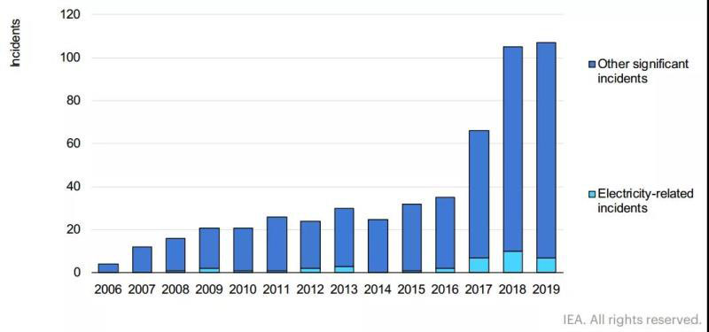 但是,測(cè)量和追蹤網(wǎng)絡(luò)攻擊的風(fēng)險(xiǎn)和影響很困難。第一個(gè)障礙是缺乏有關(guān)信息網(wǎng)絡(luò)安全事件的全面公開可用數(shù)據(jù)。第二是許多事件甚至根本沒有報(bào)告過,甚至沒有報(bào)告給監(jiān)管機(jī)構(gòu)或其他主管部門,而且有些攻擊甚至可能未被發(fā)現(xiàn)。第三是難以克服范圍和定義上的主要差異,例如什么才構(gòu)成“事件”或“攻擊”。追蹤重大網(wǎng)絡(luò)事件的全球數(shù)據(jù)庫(kù)(https://www.csis.org/programs/strategic-technologies-program/significant-cyber-incidents)顯示,近年來網(wǎng)絡(luò)攻擊事件的數(shù)量急劇增加,包括電力行業(yè)。
