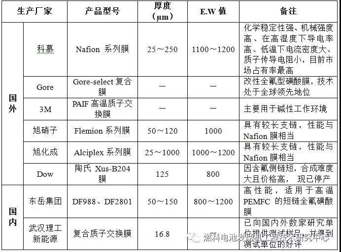 表3膜電極生產(chǎn)廠家及產(chǎn)品性能