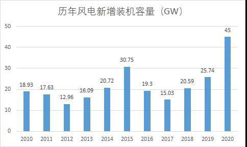 經歷風電“搶裝潮”的2020年,裝機容量大幅上升已成是必然,并且增速遠超預期。