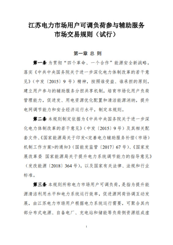 江蘇電力市場(chǎng)用戶可調(diào)負(fù)荷參與輔助服務(wù)市場(chǎng)交易規(guī)則(試行).pdf