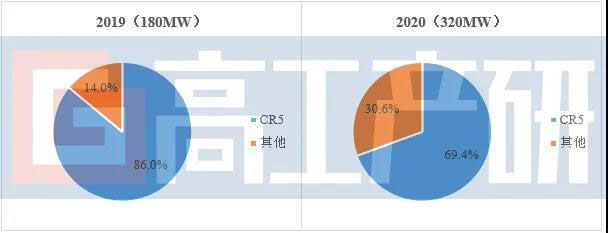 (4)市場集中度逐年下降,2020年CR5為69.4%,較2019年降低16.6%。目前市場區(qū)域性訂單多,同時(shí)批量供貨的競爭者開始增多,市場競爭開始由一向多發(fā)展,市場集中度在未來2~3年內(nèi)仍會(huì)下降。