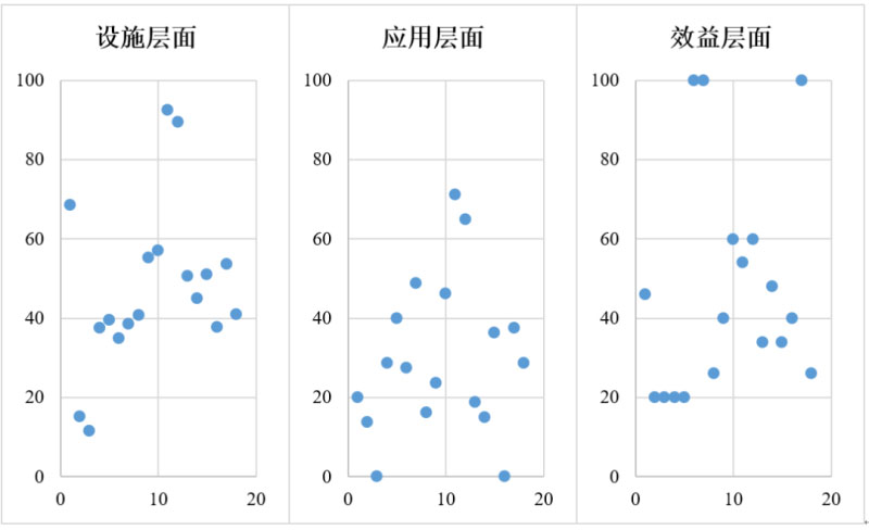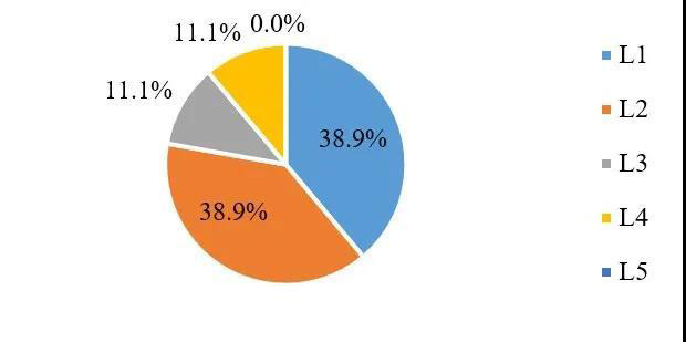 處于應(yīng)用層面L1和L2的企業(yè)都為38.9%,合計(jì)77.8%的企業(yè)在應(yīng)用層面處于較初級(jí)的水平。同時(shí),目前沒(méi)有企業(yè)在應(yīng)用層面的發(fā)展水平達(dá)到L5。因此,應(yīng)用層面的探索整體滯后于設(shè)施層面,處于初期。