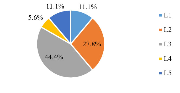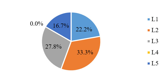 目前,企業(yè)在效益層面的發(fā)展水平相對(duì)均衡,但總體偏低。有16.7%的企業(yè)已達(dá)到L5級(jí),但是處于L3、L2、L1級(jí)的企業(yè)分別占比27.8%、33.3%、22.2%。