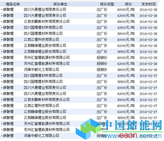 2月28日國內(nèi)主流碳酸鋰生產(chǎn)廠家產(chǎn)品報價