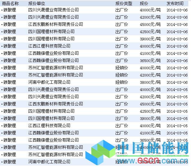 3月5-6日國(guó)內(nèi)主流碳酸鋰生產(chǎn)廠家產(chǎn)品報(bào)價(jià)