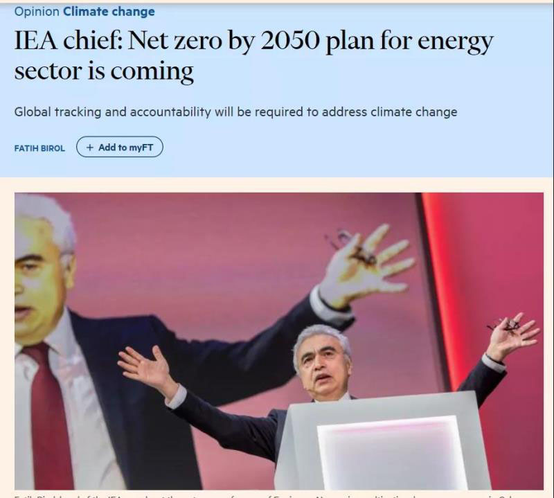 中國儲能網(wǎng)“國際能源署署長法提赫·比羅爾在英國《金融時報》發(fā)表文章,題目是:Global tracking and accountability will be required to address climate change(應(yīng)對氣候變化需要全球跟蹤和問責)