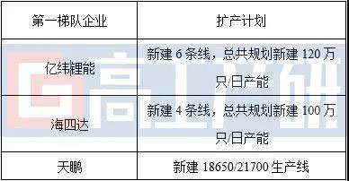 國內(nèi)部分電動工具用鋰電池企業(yè)擴產(chǎn)計劃