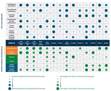 定義用例的必需功能后,需要確定可實(shí)現(xiàn)積極性能目標(biāo),徹底解決每個用例中的挑戰(zhàn)。圖2對從用例到特定能量存儲技術(shù)進(jìn)行視化展示。
