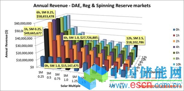 將汽輪機(jī)的容量設(shè)置的比太陽(yáng)島的集熱容量更大,是由于加州夜間短時(shí)間用電高峰期的高電力價(jià)格決定的。儲(chǔ)熱型光熱電站作為電力市場(chǎng)的輔助電源,提供電網(wǎng)調(diào)頻和旋轉(zhuǎn)備用等功能,效益更加明顯。2~4小時(shí)的儲(chǔ)熱時(shí)長(zhǎng)設(shè)計(jì)一般來(lái)說(shuō)就可以滿足這種需求。多余的汽輪機(jī)容量也可以帶來(lái)更多收益:如果汽輪機(jī)的熱功率比太陽(yáng)島的集熱輸出功率大4倍,也就是在太陽(yáng)倍數(shù)(solar multiple)為0.25的情況下,即便配1小時(shí)的儲(chǔ)熱,光熱電站的收益依然可以增加4倍。但該電站的功能應(yīng)是作為調(diào)頻電源,參與日前市場(chǎng)交易,作為旋轉(zhuǎn)備用容量。