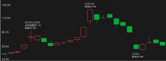 年度“妖股”Quantum Scape作為美國專注研發(fā)固態(tài)電池技術(shù)的初創(chuàng)公司,成立至今收獲了如大眾、上汽、比爾蓋茨等眾多大佬的支持,自去年11月借殼上市以來市值一路崛起,兩個月內(nèi)飆漲近10倍。Quantum Scape于去年12月8日在官網(wǎng)披露,公司固態(tài)電池只要15分鐘就能充電80%,續(xù)航里程領(lǐng)先當前商業(yè)化電池50%,且在零下30攝氏度也能運行。消息一經(jīng)發(fā)布,Quantum Scape的股價應聲上漲,22日漲達38.75%,但隨后Quantum Scape的股價持續(xù)走低,股價回落近50%。