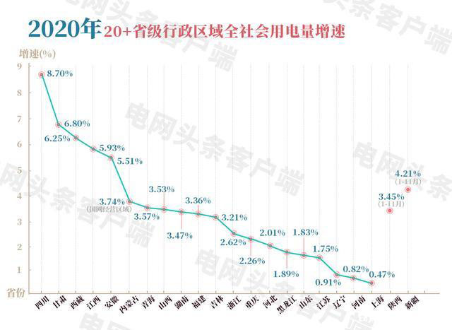 2020年11月,國家電網(wǎng)公司經(jīng)營區(qū)全社會用電量同比增長9.1%,增速創(chuàng)27個月以來新高。