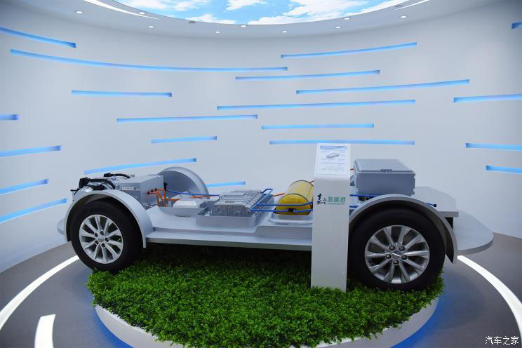 燃料電池車(chē)外表看去確實(shí)與同級(jí)燃油車(chē)沒(méi)有太大區(qū)別,但內(nèi)部結(jié)構(gòu)卻大不相同。比如我們體驗(yàn)的EUNIQ 7,其車(chē)頭部分是燃料電池系統(tǒng),儲(chǔ)氫罐位于車(chē)身中部,車(chē)尾部分則搭載著驅(qū)動(dòng)電機(jī)和動(dòng)力電池。這種底盤(pán)布局和第二代豐田Mirai類(lèi)似,但在我們參觀時(shí),豐田僅展示了第一代產(chǎn)品的底盤(pán),大概是還不想過(guò)早透露第二代Mirai的“秘密”。