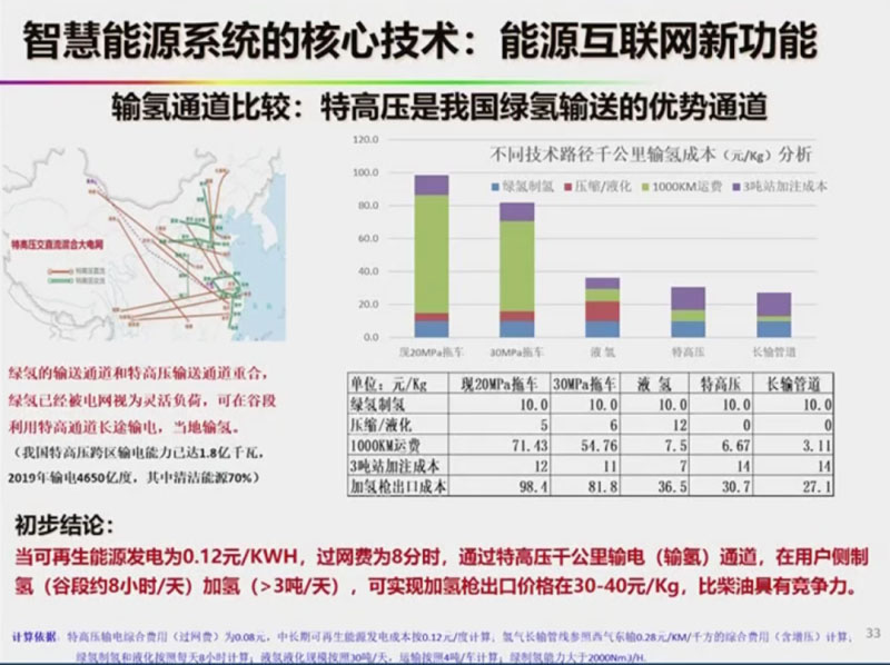 針對于氫氣的運(yùn)輸,目前測算下來特高壓和長輸送管道是成本最低的。